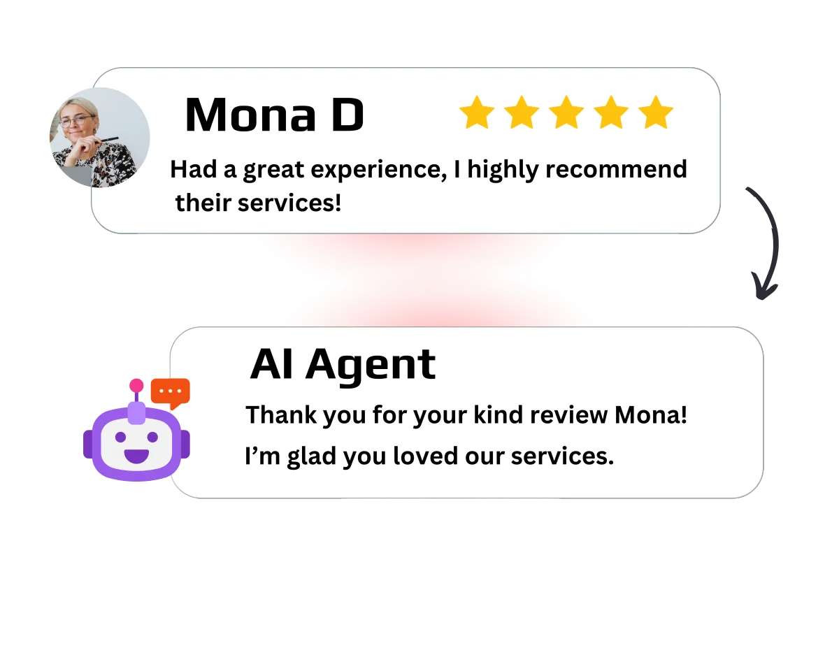 Reviews AI Automates Review requests and responses, helping you build trust, boost credibility, and attract more customers — without lifting a finger.